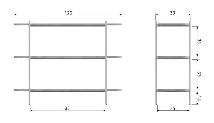 120 cm - Hyller: Ask m. børstet finish – RAL7044