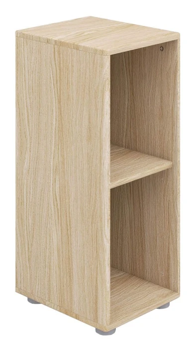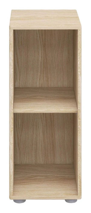 Lavt, smalt hyllemodul i eikefinér på MDF med 1 hylle. Passer under FLEXA Popsicle halvhøy senge.