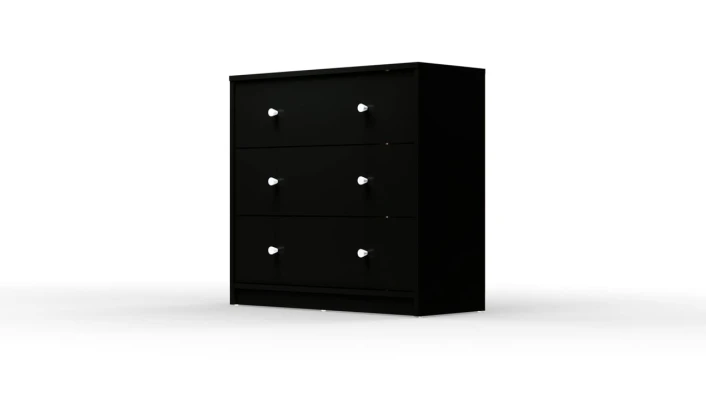 Fin stilren kommode i svart med diskrete runde håndtak. Kommoden er lett å bruke i alle hjemmets rom, da den med sitt enkle utseende diskret passer inn i både stuen, kjøkkenet, soverommet eller hallen.