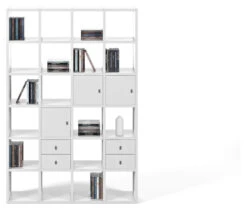 Moderne og stilfull grå bokreol. Med denne reolen er det enkelt å få plass til hele boksamlingen. Den bølgede» profilen gir møbelet et spennende uttrykk som med sikkerhet gir noe ekstra til innredningen.»