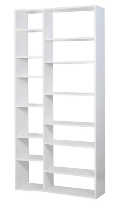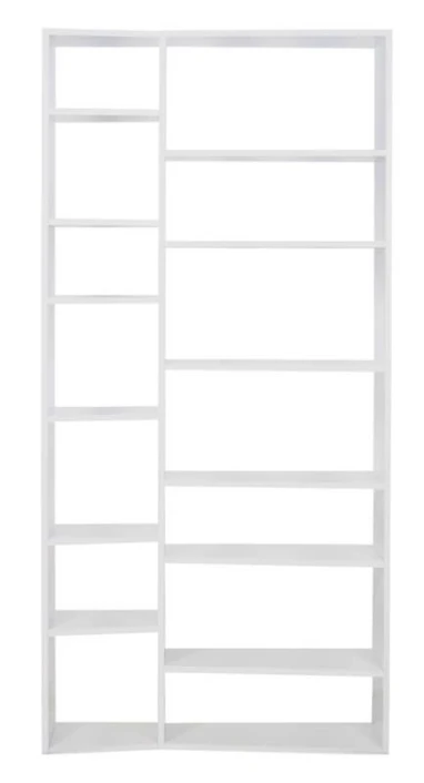 Moderne og stilig hvit bokreol. Med denne reolen er det enkelt å få plass til hele boksamlingen. Den bølgede» profilen gir møbelet et spennende uttrykk som med sikkerhet gir noe ekstra til innredningen.»